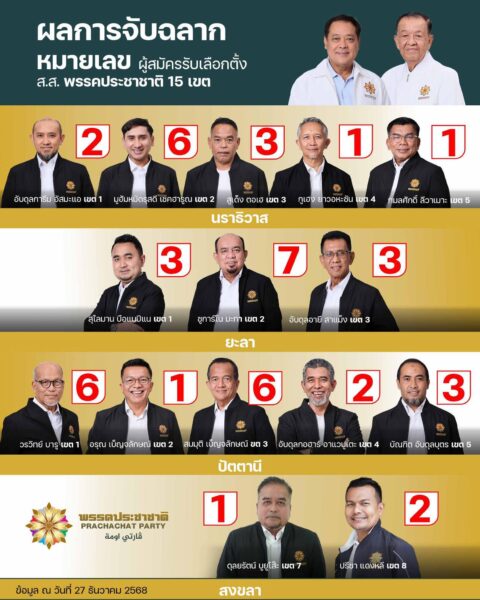 พรรคประชาชาติพร้อมเดินหน้า เพื่อพี่น้องประชาช ส่งผู้สมัคร ส.ส. แบบแบ่งเขต ทั้ง 15 เขต (ยะลา, ปัตตานี, นราธิวาส และสงขลา)