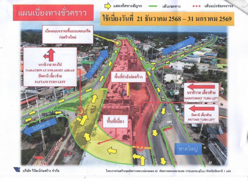 ความคืบหน้าโครงการก่อสร้างพื้นฐานสำคัญในพื้นที่จังหวัดชายแดนภาคใต้ ล่าสุด แขวงทางหลวงปัตตานี แจ้งเริ่มแผนเบี่ยงจราจรบริเวณจุดตัดทางหลวงหมายเลข 42 ตัดทางหลวงหมายเลข 410 (แยกตะลุโบะ) เพื่อเตรียมความพร้อมงานก่อสร้าง หลังทำสัญญาจ้างบริษัทเอกชนระยะยาวกว่า 1,000 วัน