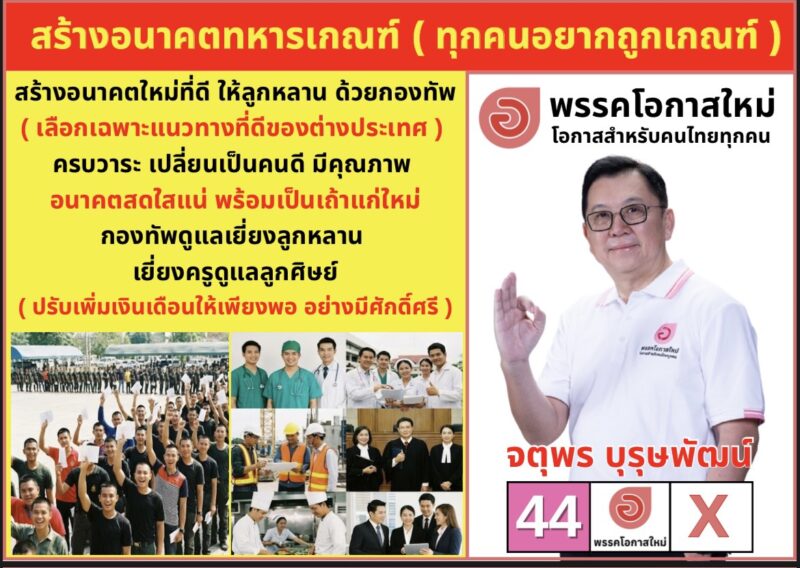 สร้างอนาคตใหม่ให้ทหารเกณฑ์ด้วยแนวทางสากล ปรับเพิ่มเงินเดือนให้เพียงพอและมีศักดิ์ศรี เพื่อให้ทุกคนอยากถูกเกณฑ์และออกมาเป็นคนที่มีคุณภาพ