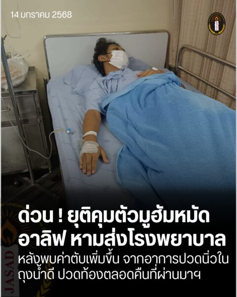 ยุติคุมตัว “มูฮัมหมัดอาลิฟ” หลังป่วยหนักนิ่วในถุงน้ำดีกำเริบขณะถูกกักตัวค่ายอิงยุทธฯ
