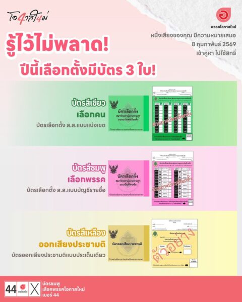 รู้ไว้ไม่พลาด “ปีนี้บัตร 3 ใบ” กางคู่มือเข้าคูหา 8 ก.พ. นี้