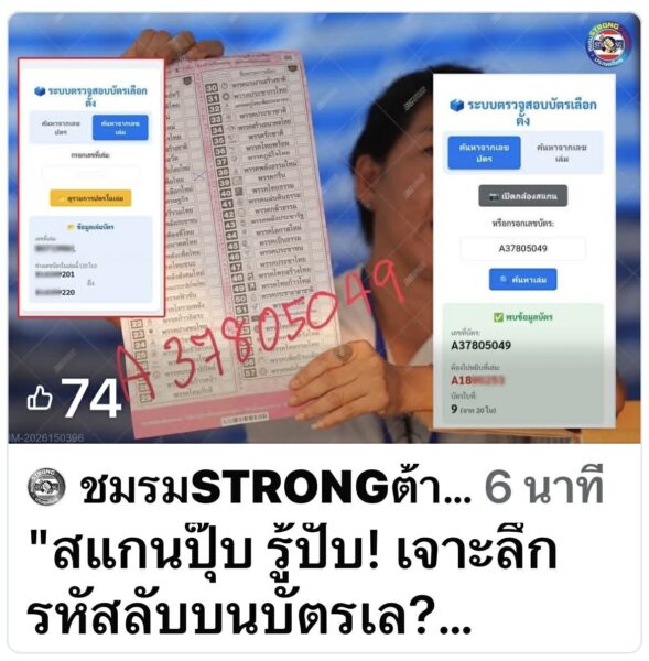 ล่าสุด ชมรม STRONG ต้านทุจริตประเทศไทย ได้เผยแพร่ข้อมูลการวิเคราะห์เชิงลึก (อ้างอิงข้อมูลจาก PPTV HD 36 และคุณ Prarttana Phromphithak) โดยการทดสอบสแกนบาร์โค้ดจากบัตรเลือกตั้งจริงจำนวน 4 ใบ ที่มีการลงคะแนนให้พรรคการเมืองต่างกัน ผลปรากฏข้อเท็จจริงที่น่าสนใจยิ่งต่อการวางระบบป้องกันการทุจริตของ สำนักงานคณะกรรมการป้องกันและปราบปรามการทุจริตแห่งชาติ (ป.ป.ช.) และหน่วยงานที่เกี่ยวข้อง