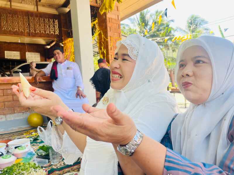 หลังจากเสร็จสิ้นพิธีละหมาด ประชาชนส่วนใหญ่ได้เดินทางกลับเข้าสู่บ้านเรือนเพื่อเตรียมเปิดบ้านต้อนรับแขกเหรื่อและญาติมิตร โดยมีการจัดเตรียมอาหารคาวหวานและขนมพื้นเมืองไว้เลี้ยงฉลองกันอย่างอบอุ่น ท่ามกลางรอยยิ้มและการขออภัย ต่อกัน ซึ่งเป็นหัวใจสำคัญของเทศกาลนี้