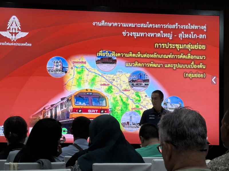 การดำเนินโครงการศึกษาความเหมาะสมการก่อสร้างรถไฟทางคู่ ช่วงชุมทางหาดใหญ่ – สุไหงโก-ลก ซึ่งเป็นโครงการยุทธศาสตร์สำคัญในการพัฒนาโครงสร้างพื้นฐานและเชื่อมโยงพื้นที่จังหวัดชายแดนภาคใต้ มีความคืบหน้าอย่างต่อเนื่อง โดยมีที่ปรึกษา กลุ่มบริษัท เทสโก้ จำกัด ซึ่งเป็นที่ปรึกษานำของโครงการ ร่วมกับการรถไฟแห่งประเทศไทย (รฟท.) และศูนย์อำนวยการบริหารจังหวัดชายแดนภาคใต้ (ศอ.บต.) ได้จัดกิจกรรมประชุมกลุ่มย่อยเพื่อรับฟังความคิดเห็นของประชาชน ระหว่างวันที่ 30 มีนาคม – 10 เมษายน 2569