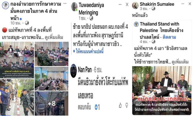 คนที่ได้ติดตามข่าวนี้ เข้าไปคอมเมนต์กันว่า เหตุใดแม่ทัพจึงต้องให้ผู้นำชาวยิวไปนั่งหัวโต๊ะ โดยผู้วิจารณ์ที่เป็นพี่น้องมุสลิม มองว่าเป็นเรื่องละเอียดอ่อน เพราะกองทัพอิสราเอลกำลังทำสงครามกับประเทศมุสลิมหลายประเทศ ทั้งอิหร่าน เลบานอน รวมถึงกลุ่มฮามาส และเข้ายึดดินแดนของชาวปาเลสไตน์ ซึ่งพี่น้องมุสลิมไทยจำนวนไม่น้อยให้การสนับสนุนชาวปาเลสไตน์ และไม่เห็นด้วยกับการกระทำของอิสราเอล